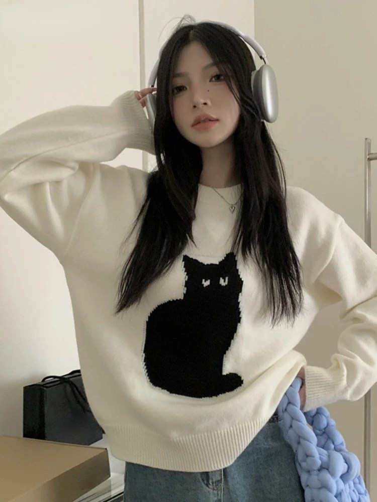 Stay cozy and stylish with this Sweet Cartoon Cat Knit Jumper, perfect for women who love charming and kawaii fashion! Featuring a playful cartoon cat design, this sweater blends vintage Japanese aesthetics with modern comfort.